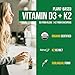 ✅ High Potency Formula of Vit D3 K2 – This liposomal Vegan Vitamin K2 D3 includes natural vitamin D and K2 – vitamin D3 5000 IU and 500 mcg MK-4 & MK-7. Vit D3 5000 IU helps body absorb calcium and K2 vitamin helps transport calcium into bone. D3 K2 vitamin 5000 IU with 500 mcg vitamin K are essential to keep bone, teeth and heart healthy.