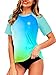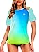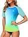😎 UPF 50+ Rash Guard Features - Sun Protection Rash Guard Top Protect Your Skin From Ultraviolet Rays. The Bright Gradient Color Print Making You Stand Out And Looking More Charming While Surfing, Swimming.