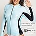 ★Feature-The UPF 50+ sun protection layer will block out the UV radiation and protect your skin whether you are in or out of the water.Long sleeve design gives you more skin protection and protects you from sunburn.The thumb hole and drawstring design to allow a better fit and outline the perfect feminine curve and add feminine charm.