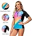 ➤Unique Design:No Bra Liner-The design without built-in bra allows you to match your favorite tops freely.Unique Design Rash guard shirt featuring stylish sleeve splicing with tropical and geometric print for charming look.