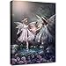 💮Fantasy Theme Wall Art: Two angels play at forest garden picture print on canvas, is chic decor for girls room or nursery.