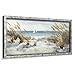 Modern Art Rustic Scenic: Nature wilderness photography for bedroom wall decor. Blue sea and white sand painting on canvas, Let you look at the window indoors, and you can have the beautiful scenery outside! Whether it is a summer reed beach or autumn and winter sunset.