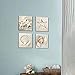 Seashell Pictures Wooden Artwork Framed - Starfish & Shell on Beach Painting Prints Wall Art for Bathroom, 12” x 12”x 4 PCS