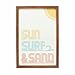 Open Road Brands official product: Sun, surf, and sand - what more could you need?! This light and airy decor features shades of yellow, blue, and reddish orange, along with an illustrated sun in the corner.