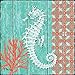 Teal and Coral Ocean Seashell, Sand Dollar, Seahorse, & Star Fish Collage. Coastal Wall Art
