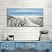 Blue Coastal Pictures Wall Art: The abstract beach canvas wall art of rustic boardwalk access to the blue sea directly, two sailboats sailing near the ocean skyline, refreshing your home and create a tranquil atmosphere (Multiple size available)