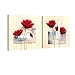 2 piece gallery wrapped red flowers canvas paintings wall art prints ready to hang for home decorations wall decor. Each panel has a black hook already mounted on the wooden bar for easy hanging out of box.