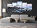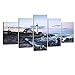 5 panels huge size stretched and framed blue ocean sunset beach canvas paintings wall art prints ready to hang for home decorations wall decor. Each panel has a black hook already mounted on the wooden bar for easy hanging out of box.