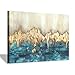 Gold Foils Blue Abstract Art: Due to the different display and different light, the teal abstract canvas art actual color may be slightly different from the color displayed on the screen. Copyright licensed image with high resolution definition.