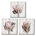 Vintage Pink Flower Wall Art: The floral canvas wall art features pink protea cynaroides flowers blooming over the textured canvas, pink floral pictures lending an air of elegance to your bathroom