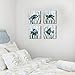 ✈【Navy Blue Wall Decor Kids Bathroom Wall Art Size】: 12 x 12 inch x 4 Panels (about 30 x 30cm/ piece, set of 4 pieces). Style: Navy blue wall art with white wood background hand painted watercolor painting printed Mediterranean ocean themed blue bathroom decor. Patterns: Sea turtle, octopus, Sea fish, Jellyfish.