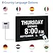 【Auto-Dimming Option - Save Energy】The day clock auto-dims at 7:00 pm and auto-brightens up at 7:00 am, and also it provides the option to turn off auto-dimming to keep the brightness all the time. Support 8 languages: English, français, Deutsche, italiano, Polskie, Español, Nederlands, Cymraeg.