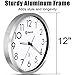【Easy to Read Clocks for Living Room Decor】 12” Clock Dial,design with large numbers contrast to the black face, which makes reading the time easy from any angle. Silver Aluminum frame adds style and longevity,perfect for dining rooms, living rooms, family rooms, bedrooms, study room,kitchen, office and meeting room.
