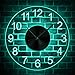 This 12" round clock has LEDs that shine through the center of the clock and lights up the numbers and edges.