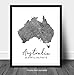 AUSTRALIA-THEMED WALL PRINT - A silhouette picture of the country overlaid with a grey-marbled design, along with map coordinates. A great art print, ready to frame & hang in the living room, office, bedroom, den, bathroom, kitchen, entry, hallway, library or any room in your home or workplace!