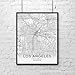 This minimalist and modern black and white Los Angeles city grid road map wall art print is available measures 11 by 14 inches, and it’s UNFRAMED. Pictures are for inspiration only and the frame is NOT included