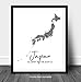 APANESE-THEMED WALL PRINT - A silhouette picture of the country overlaid with a grey-marbled design, along with map coordinates. A great art print, ready to frame & hang in the living room, office, bedroom, den, bathroom, kitchen, entry, hallway, library or any room in your home or workplace!