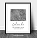 COLORADO-CO-THEMED WALL PRINT - A silhouette picture of the state overlaid with a grey-marbled design, along with map coordinates. A great art print, ready to frame & hang in the living room, office, bedroom, den, bathroom, kitchen, entry, hallway, library or any room in your home or workplace!