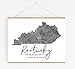 KENTUCKY-THEMED WALL PRINT - A silhouette picture of the state overlaid with a grey-marbled design, along with map coordinates. A great art print, ready to frame & hang in the living room, office, bedroom, den, bathroom, kitchen, entry, hallway, library or any room in your home or workplace!