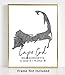 CAPE COD-THEMED WALL PRINT - A silhouette picture of the island overlaid with a grey-marbled design, along with map coordinates.