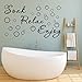 Large size: the 2 sheets vinyl wall decals are in big size; The quote sticker [Bathroom] and [Soak Relax Enjoy] both come in compact forms, and they allow you to DIY the finished size as you like, enhancing your creativity
