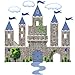 Large stone wall castle with blue turrets and flags wall decal with greenery