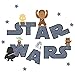 Includes officially licensed Star Wars Logo plus Chewbacca, C-3PO, R2D2, Darth Vader, Yoda, Ewok and stars