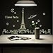 EIFFEL TOWER WALL DECAL - Size as picture: 34”W x 34”H - In order to customize this decal please send us a message after placing the order to let us know the name and colors you would like for your Wall Decal.