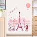 Pink Eiffel Tower Decor Stickers. Instantly add vitality and color to your dream home. It's perfect for wedding room and as gift for babies, girls, etc.