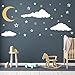 Moon size is 29X25cm, size of clouds ranges from 29-57cm, size of stars ranges from 2.5-9.2cm