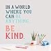 INSPIRATIONAL WALL DECAL SET: Includes multi-colored "In A World Where You Can Be Anything… Be Kind" word decals along with hearts and other accent stickers that can be mixed and matched for instant style and inspiration