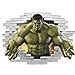 Package includes 1 sheet of cartoon wall decal for Hulk. translucent cartoon character stickers, a great addition to your super hero themed room. Great gifts for kids who love super heroes.