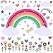 Realistic design: The kids wall decals designed with rainbows, clouds ,stars and hearts, the rainbow measures approx. 19.3 inches in height and 35 inches in width. And another decal designs with cartoon flowers and butterflies. These watercolor rainbows and flowers wall decals will transform kids room into a charming and creative decoration style.