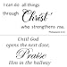 【Package Include】:You will get 3 sheets biblical wall stickers,each sheet approx size is 11*14.7Inch.This god quotes wall stickers contians two phrases:I can do All Thing Through Christ who Strengthens me. Philippians 4:13 and Until God Opens The Next Door Praise Him in The Hallway. You will keep motivated with these charming positive sayings.