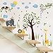 Featuring with cute cartoon animals, including monkey, elephant, lion, giraffe, birds. There are also tree, green leaves and clouds. This bright colors decor your home and add more fun for kids