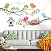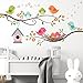 Colorful Bird Wall Decals: comes with 3 sheets, watercolor robin birds floral blossom tree branches wall decals.