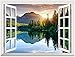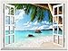 3D Art Printing: The ocean beach wall sticker with open window design, very fashionable and relaxed, HD printing is very perfect to renovate and expand indoor visual space.