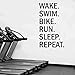 Package Included: 1Pc x "WAKE SWIM BIKE RUN SLEEP REPEAT" Sticker Wall Decor.