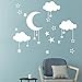 Package include: 1 pcs Big Clouds Moon Stars game wall decal, size: 27.2 x 22.5 inch (69 x 57cm), color: white. Our peel and stick decal stickers include easy step by step instructions on how to effortlessly apply the vinyl.