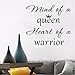 Package include: 1 pcs Queen Warrior wall decal, size: 19 x 17 inch (48.3 x 43.2 cm), color: black. Quote: “Mind of A Queen Heart of A Warrior”. Our peel and stick decal stickers include easy step by step instructions on how to effortlessly apply the vinyl.
