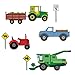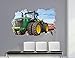 Four large farm vehicles: tractor, pickup truck, combine, tractor with trailer plus 3 street sign wall stickers. Sizes shown below.