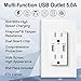【Smart & Ultra High Speed 5.0A】Electrical outlet with USB ports ensures all your devices stay charged while leaving room for other appliances. You can charge two USB devices simultaneously without adapters. USB port supports up to 5V 5.0A, which is very suitable for USB table lamps, fans, iPhone, iPad and other USB devices.