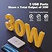 ✅【Up to 30W】 Type A and Type C USB charging ports feature a total output of 5V DC, 6.0 Amp, 30W. Dual Type-C USB ports (3.0A each) and one Type-A USB (1.5A). 【NOT for laptops】
