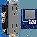 Space Gray color; 15A 125VAC, 5-15R; Polycarbonate Thermoplastic construction; flammability UL94, V2 Rating; UL Listed; 1-year warranty; wall plate sold separately
