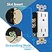 Child safe tamper-resistant decorator receptacle increases safety by preventing unwanted objects from being inserted; complies with 2017 NEC Article 406.12