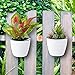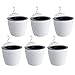 Set of 6 hanging white hard plastic planter pots with interior black plastic liner pots with drainage holes