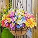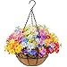 <p>【Beautiful Hanging Flowers】: The beautiful faux hanging silk flower basket comprises of coconut lining chain Hanging flowers basket,12 bundles of daisies in 6 colors, semi-circular plastic leaves.The planter dimensions is 9.8”x9.8”x5.5”(LxWxH) and the chain length is 15.7 inches.</p>
