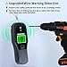 Buzzer & LED Warning. Audible and visual alarms for easier and safer scanning. LED signal lights of 3 colors for finding different materials hidden behind. Green light for wood, red light for metal and wires, amber light when detecting both wood and wires/both metal and wires.