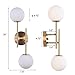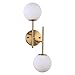 【2-lights Modern Ball Wall Light】Crafted from sturdy metal , featuring brushed brass finish with 2 white globe glass Lampshade, BYOLIIMA gold globe Wall Sconce no need to worry about getting oxidation and color fading. Simple and elegant,Perfect for mid-century decoration styles and combines the contemporary and retro style.