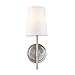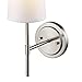 WHITE FABRIC SHADE: the white fabric shade provides a classic glow that is off-set by the brushed nickel finish and adds a classic illumination to any space